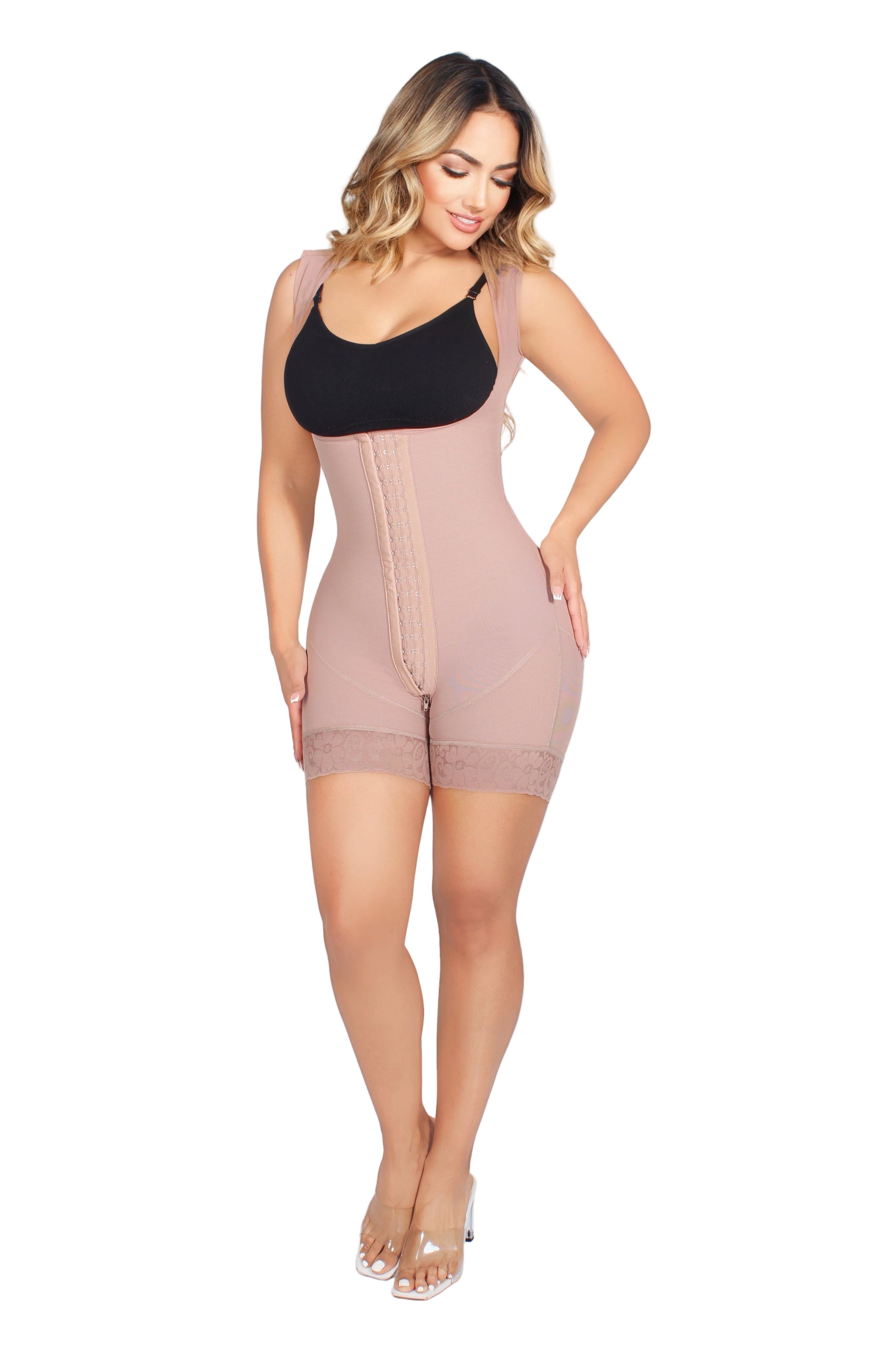 Comodidad, control y libertad en un solo diseño. Esta faja sin mangas y con senos libres moldea tu figura de manera suave y natural, permitiéndote usar tu propio brasier y sentirte segura en cualquier ocasión.